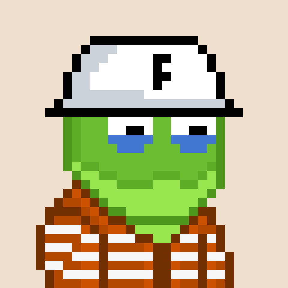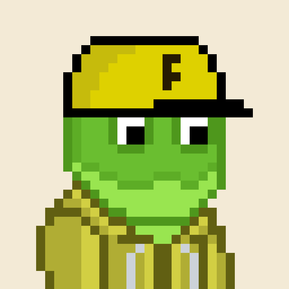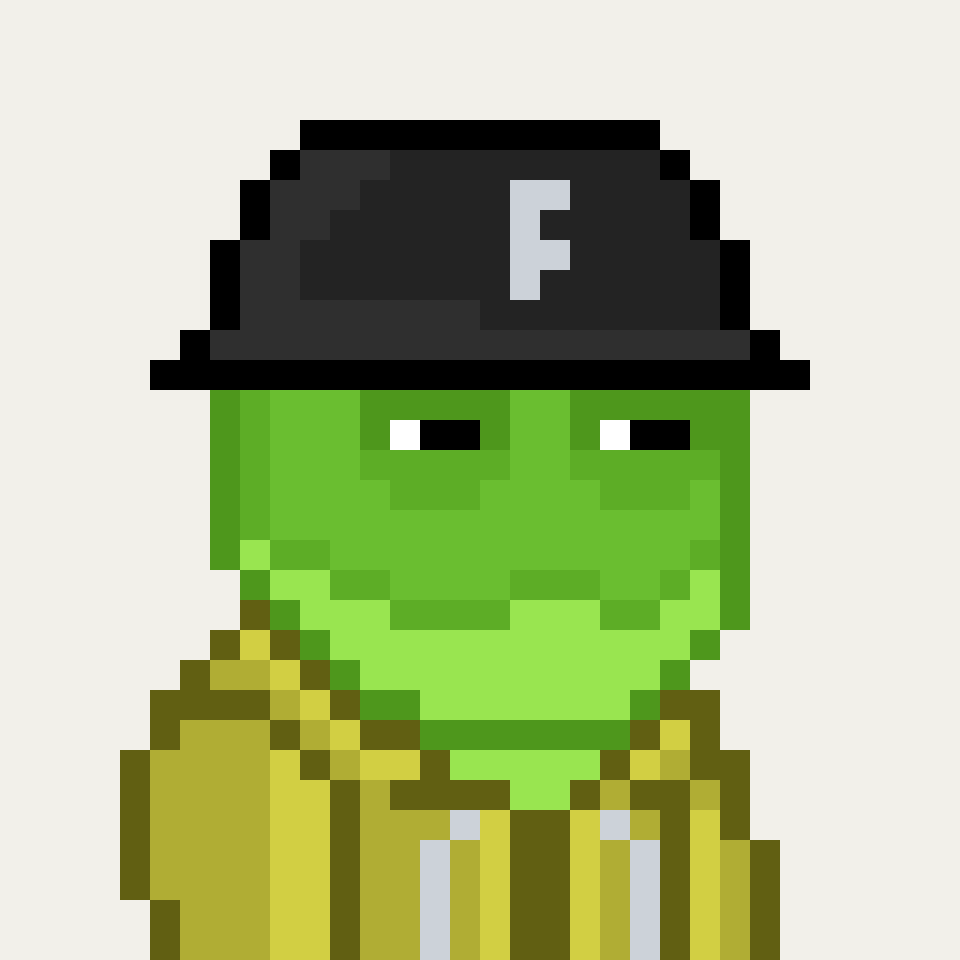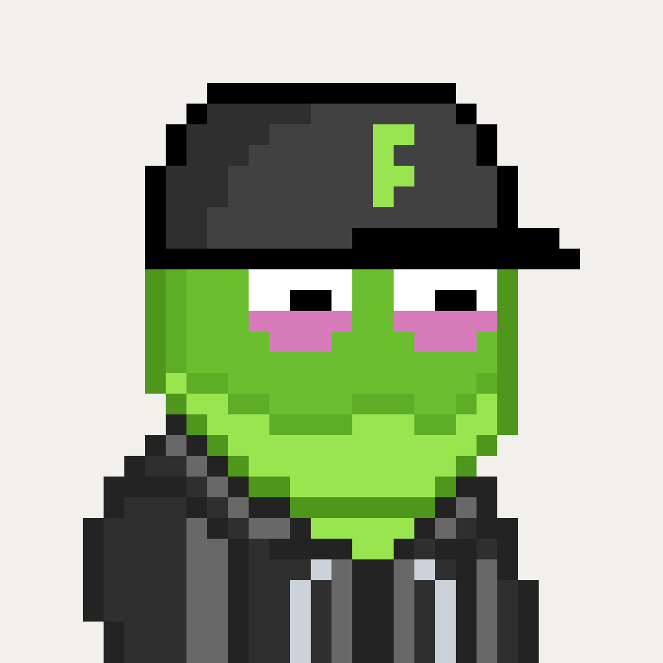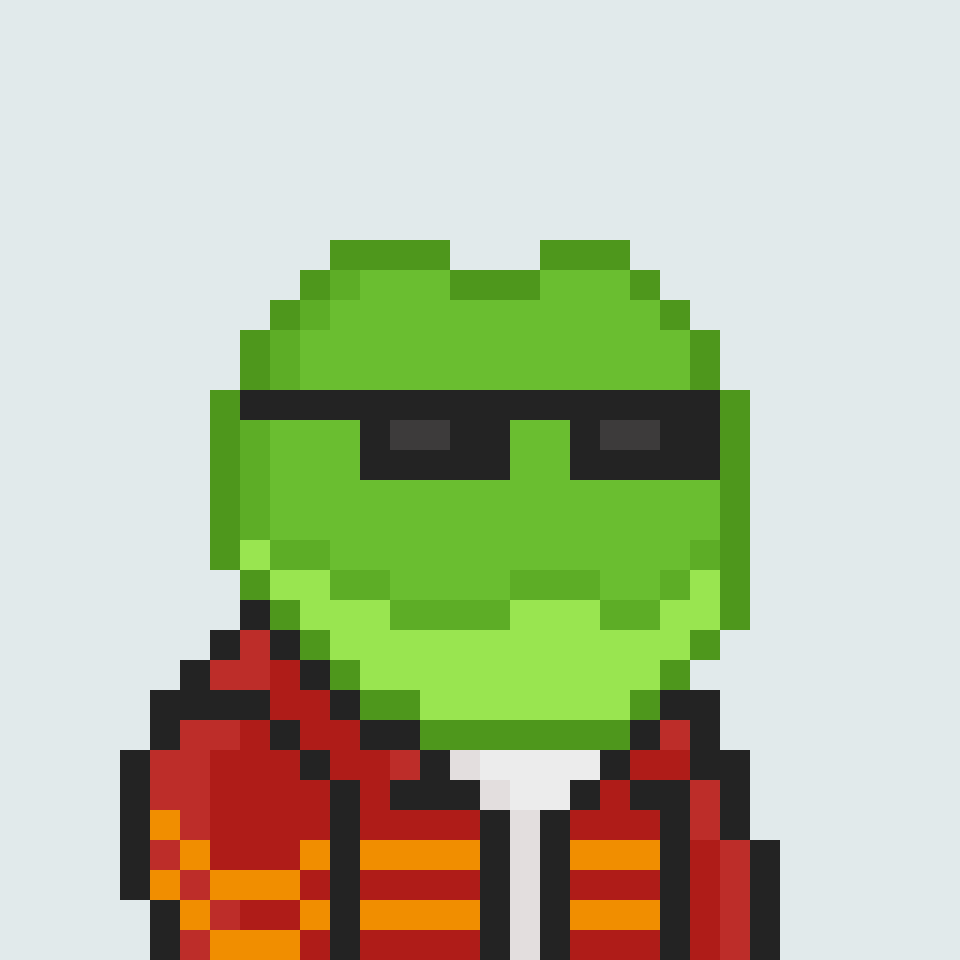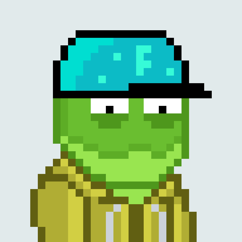 Tempo Frogs is a collection of 2,525 unique pixel art frogs living on Tempo. Each frog is algorithmically generated with unique combinations of eyes, clothes, headwear, body, and background traits.