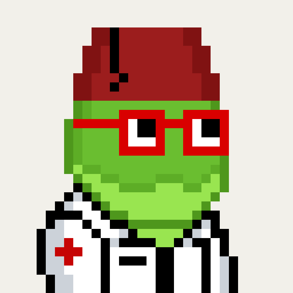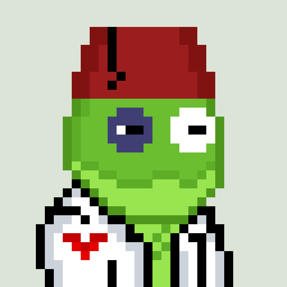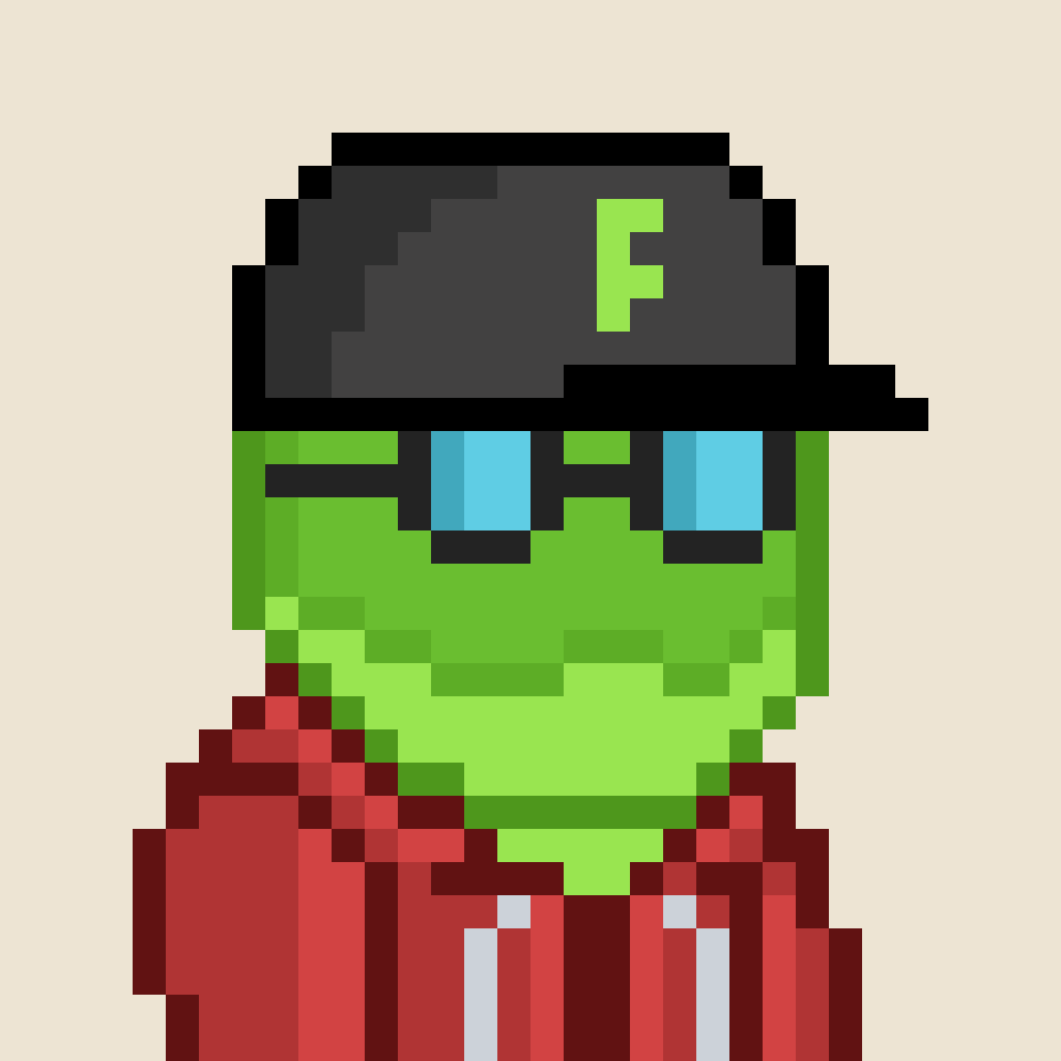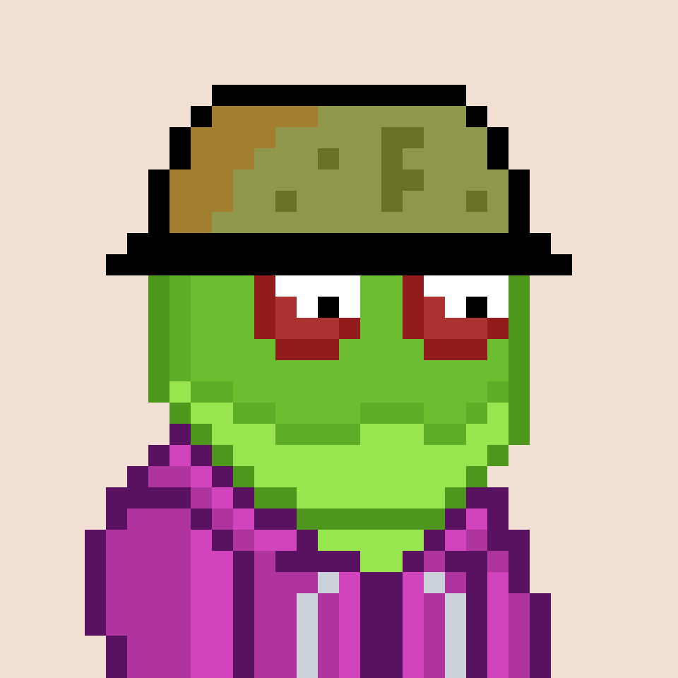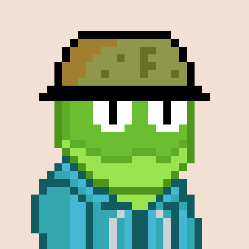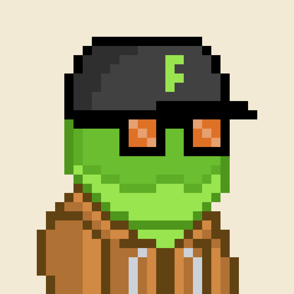 Tempo Frogs is a collection of 2,525 unique pixel art frogs living on Tempo. Each frog is algorithmically generated with unique combinations of eyes, clothes, headwear, body, and background traits.